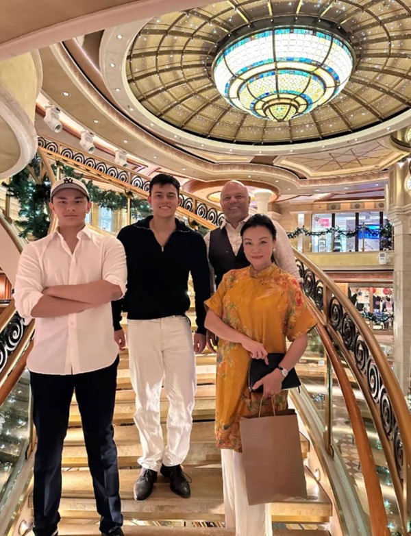 两个儿子的身高、体型,都遗传了父亲,一看就是身材很结实。而两个儿子的五官长相更像妈妈、就自然比父亲还要帅气很多。