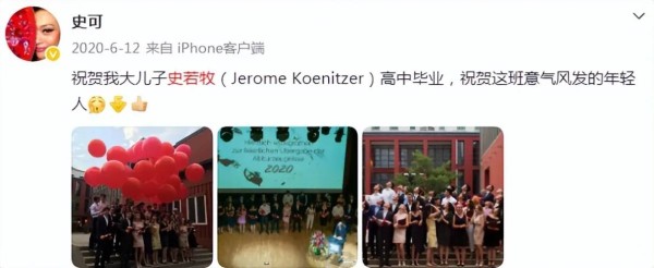 值得一提的是史可的大儿子随母姓,叫史若牧。其实在国外并没有太强的传统观念,孩子随母姓也可以被很多人认可。