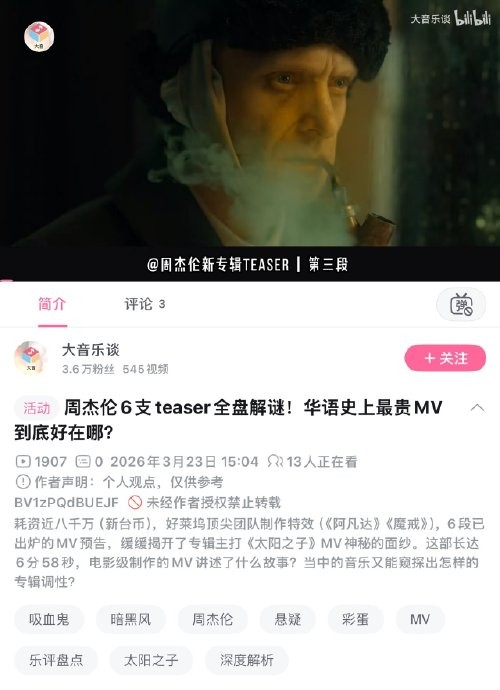 周杰伦新专辑太阳之子MV明日首映,小破站解析六支teaser