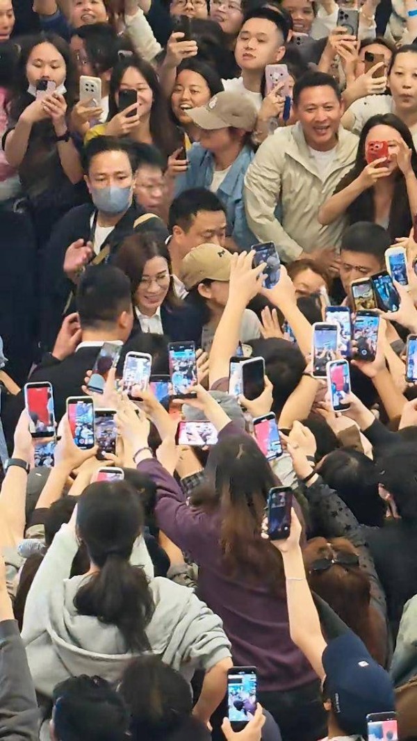 这次宣传活动原本气氛相当热烈。阿佘现身后,全场几乎瞬间沸腾,现场到处都是举起来的手机,形成一片夸张的“电话海”。
