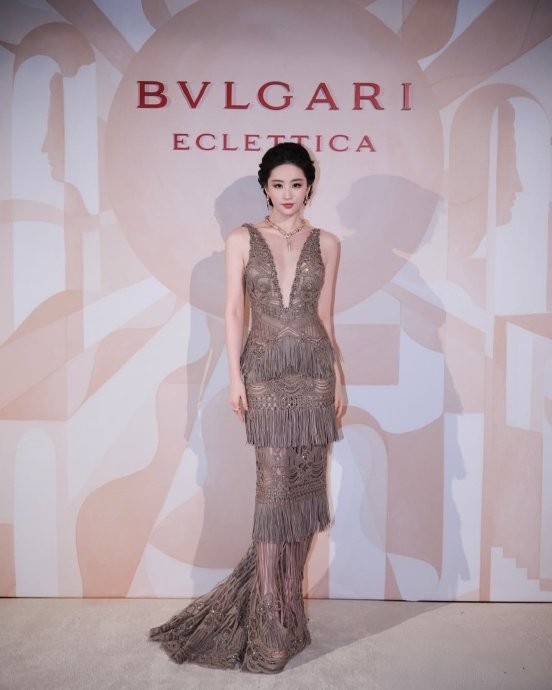 刘亦菲亮相米兰宝格丽晚宴,身着ELIE SAAB 26ss高定宝格丽舞台:刘亦菲安妮海瑟薇同框的华丽绽放。