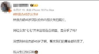 林俊杰晒合照庆祝45岁生日!小21岁网红女友七七未出现七七不在林俊杰庆生合照