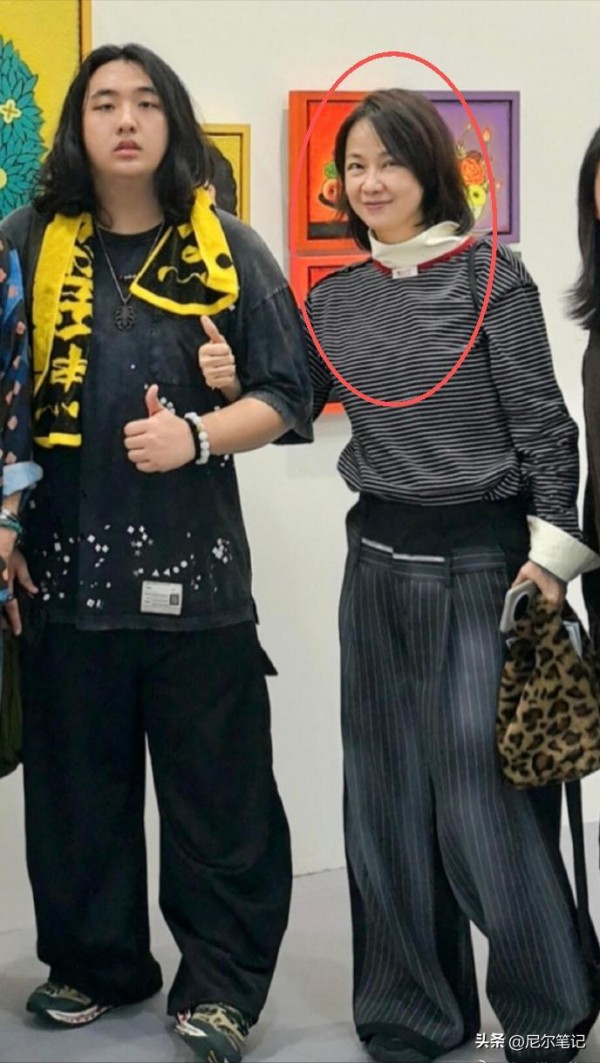 她今年已经五十六岁,息影多年,一直很低调,很少在公开场合露面,这次陪儿子看展,一身简约穿搭尽显优雅气质。