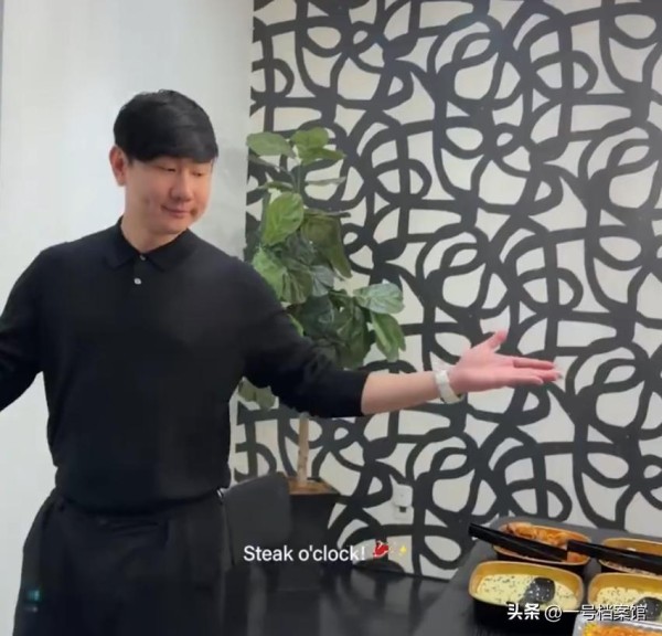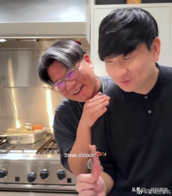 视频中她和自己的朋友在家里平人没事,评优给她剪的牛排看上去就是非常好吃。