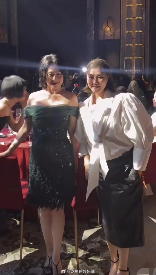 何超琼何超莲同框出席晚宴,抹胸裙与红装各显风采