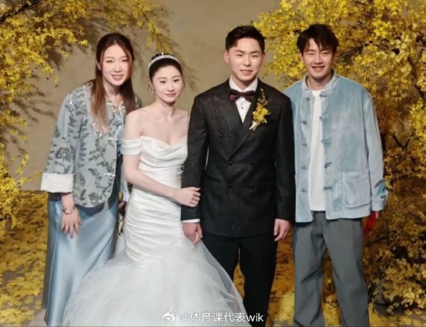 钱天一王昶,新中式小夫妻,郎才女貌乒羽一家亲!钱天一王昶参加好友婚礼,穿新中式情侣装,王昶兜里装了很多红包
