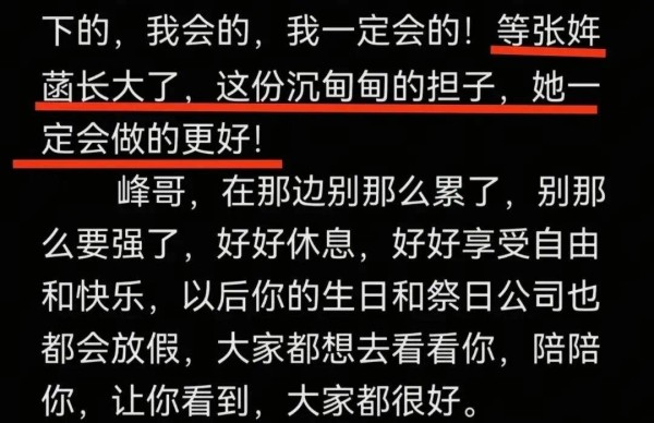 最重要的是,武亮说他会等张雪峰的女儿张姩菡长大,他会把这份沉甸甸的重担背负在肩,未来把公司交托到张雪峰女儿的手上。