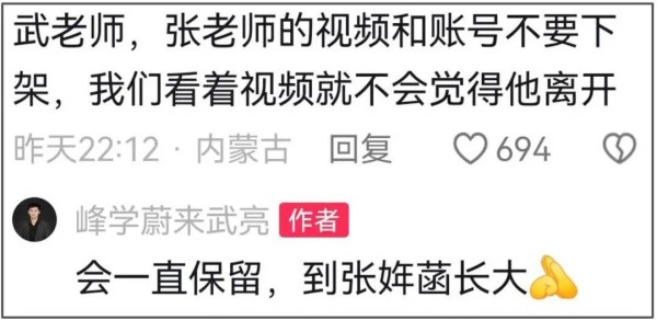武亮承诺,他会照顾好张雪峰老师的家里人,照顾好公司上百号员工,服务好学员和家长……以上所有张雪峰老师放心不下的,都是他未来会努力完成的。