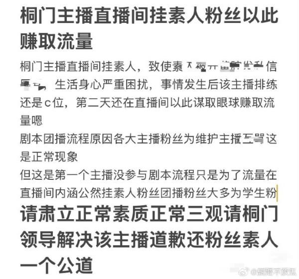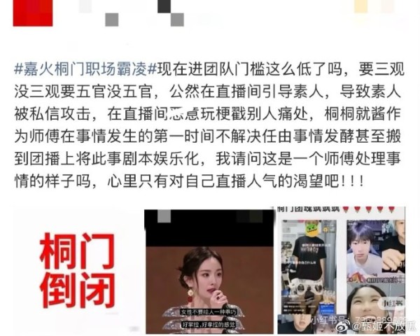 #嘉火桐门职场霸凌#嘉火团播直播间网红80未成年素人粉丝,多次挂其隐私用词不堪。