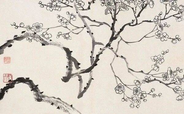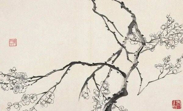 与金农“文人雅梅”的冷逸不同,齐白石出身民间,摹习中不自觉融入湘地花木的鲜活感。金农画梅重“意”轻“形”,偏向孤高脱俗;齐白石早期梅花虽笔法学金农,却在枝干的姿态、花瓣的排布上多了几分山野梅花的朴拙生机,少了些许文人画的清冷疏离。
