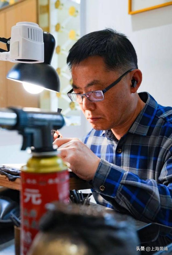 走进工坊,叮叮当当的敲打声不绝于耳。中国工艺美术大师、国家级非遗—老凤祥金银细工第六代传承人沈国兴正带领团队潜心打磨作品。“虽然造型一样,但每个技师做出来的花纹都不同,呈现出独特的效果。”沈国兴指着一把精美的黄金龙凤壶说道,越来越多顾客开始选择具有特别意义的定制款产品。