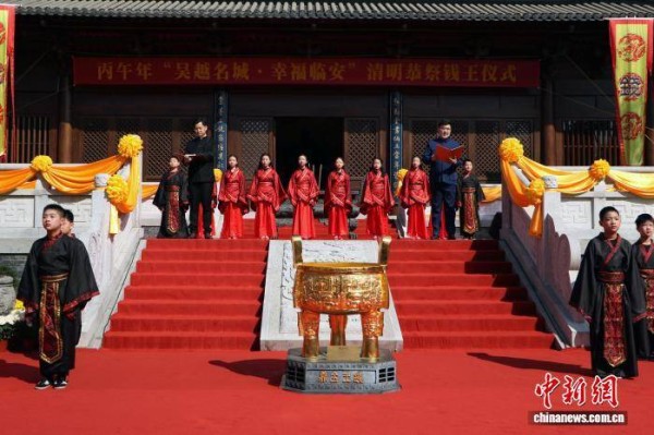 4月2日,海内外钱氏后裔、社会各界人士代表及市民代表共同参加清明恭祭钱王仪式。当日,丙午年清明恭祭钱王仪式在浙江杭州临安举行,近500名海内外钱氏后裔齐聚于此,共祭先祖武肃王钱镠。 毛佳仪 摄