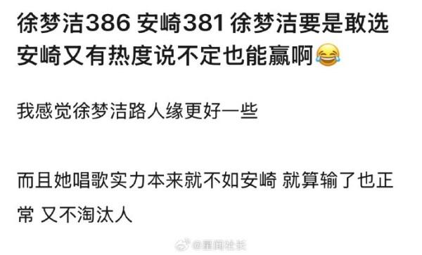 #李小冉安崎 票数# 李小冉赢了安崎,安崎381票,李小冉507票,李小冉是初舞台第三个500以上的,感觉安崎初舞台没有展现出自己的特点,明明很强,实力很稳,但是流行嗓唱民族歌曲,导致音域都不是很搭,安崎观众缘也有待加强吧!#浪姐第二场和第一场不是一个节目#