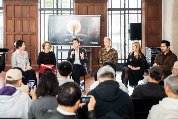 音乐城堡大厅内,《魔笛》主创交流会正热烈进行。4月9日至12日,这部经典歌剧将作为第41届上海之春国际音乐节压轴大戏,在上音歌剧院上演。该版本由上海音乐学院与德国弗莱堡国立音乐学院联合制作、基尔歌剧院参与排演,两院院长廖昌永、路德维希·霍特迈尔共同出任艺术总监,德方导演亚历山大·舒林教授执导,马里乌斯·斯蒂格霍斯特教授执棒,国际专业团队全程操刀舞美、灯光与服装设计。这场交流会由上音歌剧院副总经理朱丹丹主持。