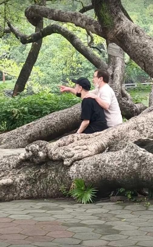最让人动容的是另一张合影,成龙和房祖名一同坐在一棵古树下休憩,褪去了往日的疏离,画面满是温情。43岁的房祖名身穿黑色短袖,头戴同色系棒球帽,一身简约装扮尽显沉稳,期间成龙自然地将手搭在儿子的肩头,两人凑在一起愉快畅聊,眉眼间的亲昵,藏都藏不住。
