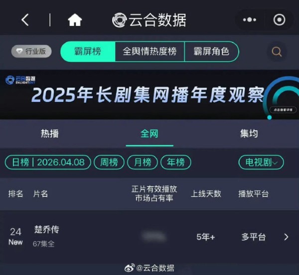 #赵丽颖林更新楚乔传重回云合日榜##楚乔传重回云合日榜#赵丽颖、林更新主演的《楚乔传》再度回归云合日榜,是因为《冰湖重生》还是长尾效应?