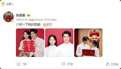 这两天,孙丞潇和金莎低调领证结婚了!微博上,两人先后发布官宣,郑重地称呼彼此为“老公”“老婆”。