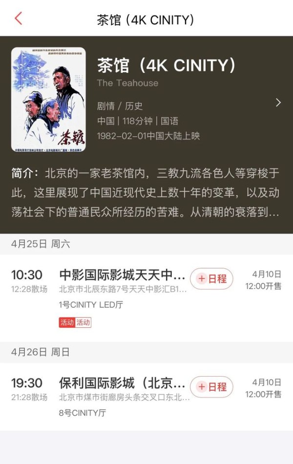 4.25中影党史馆《茶馆》4K CINITY版修复世界首映,大咖云集,纪念老舍先生这部不朽光辉之作诞生70周年,欢迎影迷朋友踊跃参加!
