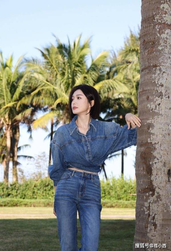 秦岚新剪了波波头年轻20岁,穿牛仔衬衫+牛仔裤,美得像换了个人