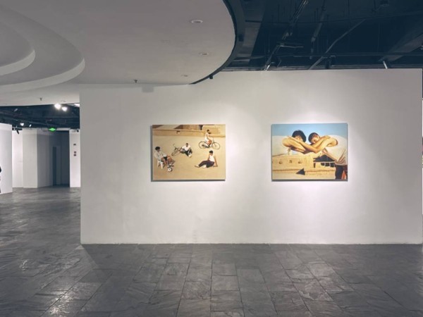 展览现场,安德烈·卡瓦祖蒂(老安)与陆元敏(左)作品并置