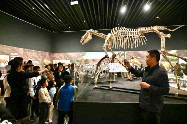 “‘化石王国·生命史诗’甘肃·临夏·和政古动物化石主题特展”以“世界上最大的三趾马动物群”“世界上独一无二的和政羊”等为代表的“十项新生代化石研究世界之最”化石集体亮相,让观众在科学与艺术的交融中感受文明的多样性,成为亲子家庭观展的热门选择。