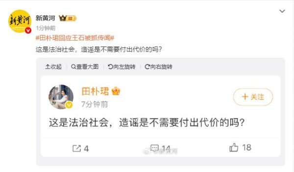 田朴珺回应王石被抓传闻:这是法治社会,造谣是不需要付出代价的吗?