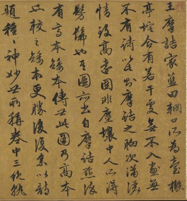 赵孟頫行书《辋川图跋》,来源:宋人临辋川图卷拖尾,台北故宫博物院藏。