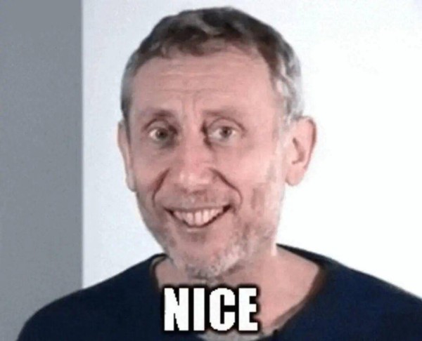 这个表情包出自迈克尔2008年的读诗视频,他在视频里描述了这样一个场景:面对刚出锅、热气腾腾的食物,耐心吹凉后成功享用,于是发出那声得意的“Nice!”。