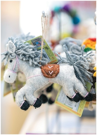 | 内蒙古博物院一家文创店内的马造型挂件。 |