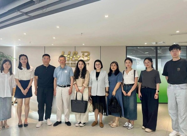 去年6月,聂鑫鑫还与其他老师一起受邀企业走访,当时她穿着裙子,看上去格外优雅。