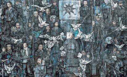 一座城市的灵魂,在于历史环境的变迁更替,也在于人的繁衍生息,从某种意义上说,后者才是城市真正的主角。正如天空的繁星密布,具名的和不具名的人物聚集在城市,他们和历史变迁相互作用,构成了城市的过去与未来。本次上海历史文脉美术创作工程的100件作品中,从“菘泽、福泉山”的文明印迹开始探寻,最后的第100件作品落在“海上先贤”,此处的喻义不言而明。上海,不仅作为一个经济富庶、人文鼎盛的古代城市,更是一个中国近现代经济、文化中心的现代大型城市,正是因为无数仁人志士、英雄豪杰的努力奋斗甚至献出自己的鲜血和生命,才换取了今天的繁荣和光明。“海上先贤”必定是一个开放的未尽的长卷,他们必将在上海这座城市的时间长河中发光发热,因为他们是城市永恒的骄傲。
