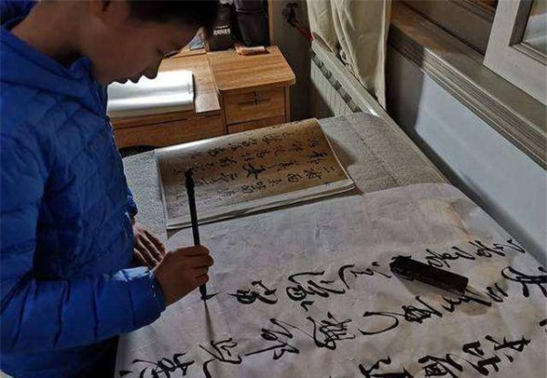 **宝剑锋从磨砺出** 当大多数同龄的孩子还沉迷于手机游戏时,李昭华却显得格外“另类”。对于他来说,游戏从来不是吸引他注意力的主角,而他更热衷于一项与众不同的爱好——书法,尤其是王羲之的书法。