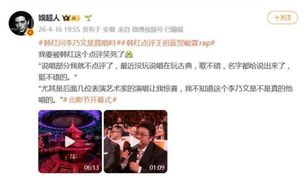 北京国际电影节开幕式,韩红:李乃文是不是真的他唱的