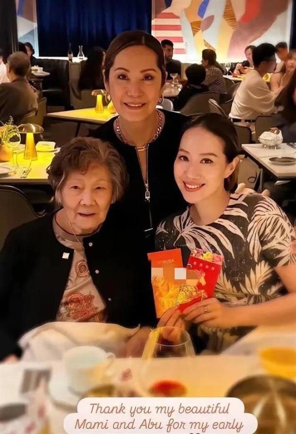 站在合影C位的是汪诗诗的妈妈徐莉君,今年68岁。她盘着头发,一身黑裙搭配全套首饰,皮肤紧致,气质优雅,和45岁的女儿同框,看起来就像同龄的姐妹。最年长的外婆也穿着得体,气质出众,虽然比去年瘦了一些,但精神头依然很好。这场面,是实实在在的三代同堂。