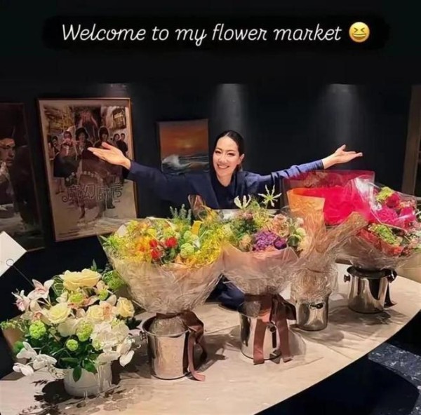 45岁汪诗诗生日排面十足!甄子丹豪气包场 狂收9束鲜花和一堆红包