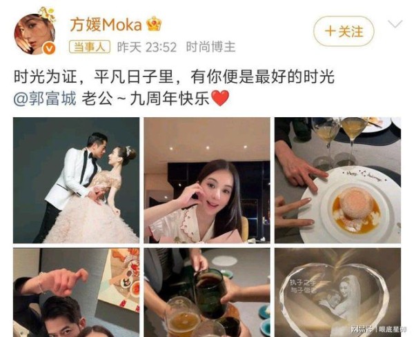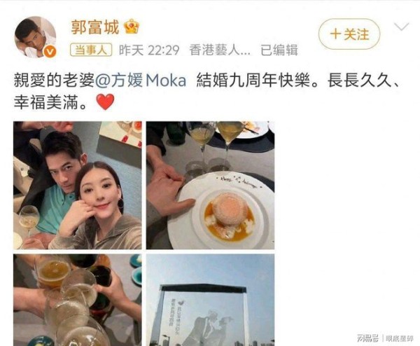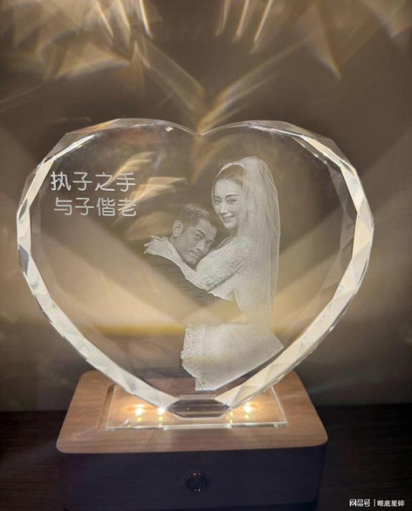 郭富城与方媛晒结婚纪念日合照,双双晒照定制水晶摆件撒糖