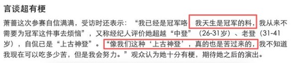 这是她自己造的梗。在《浪姐》的先导采访中,萧蔷一开口就定下了基调:“我是上古神兽。”随后,她又自嘲是“上古神登”。非常萧蔷的一个瞬间,可想而知她为了让你记住她,私下准备了多久。这种话术充满了老派艺人的面对媒体时的匠气,每一个字都像是为了第二天的热搜标题而设计,每一处停顿都精准地卡在镜头切换的点上。