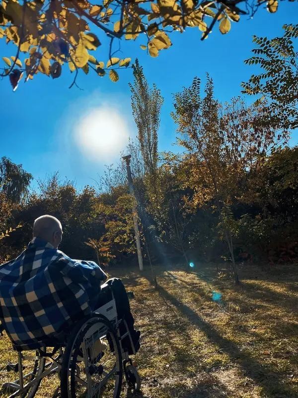 媒体没拍到他拍戏,最多是推轮椅在四合院晒太阳,把御弟哥哥的温柔全罩在她身上。