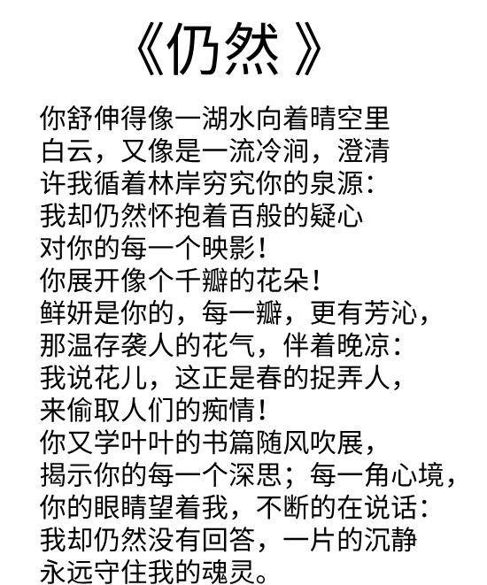 《仍然》作为对《偶然》的回应,暗藏深意。她以仍然这个词作回应,正是对两人相识的偶然命运的深刻认知,岁月流转,爱与恨都已成了往事,但他们依然是彼此最亲密的朋友。这首诗可以被分为三个部分,第一部分讲述了林徽因对徐志摩当年感情的回望,她用晴空的白云与冷冽的溪水来比喻徐志摩深情的爱,向他表达了感激之情。开篇便用这样的比喻,将林徽因的心境展现得淋漓尽致。当年,徐志摩爱的炙热,而自己却总是带着疑虑去审视这份痴情。显然,林徽因在多年之后,带着反思的心情,才写下了这段文字。 第二节则充满了无奈与惆怅。徐志摩曾是她心中的花朵,向她展开每一片花瓣,带来无尽的清凉与舒适,但命运却捉弄了他们的相遇。他们相遇的时机并不合适,这段情感注定无法开花结果。整节诗充满了朦胧的美感,表面上写的是春天与花朵,实际上是在描述他们之间未能实现的爱情。诗中的春的捉弄便为这段感情画上了句点,不是他们不够深情,而是命运无情地将他们推向了各自不同的道路。 第三节中,林徽因解释了当年为何未能回应徐志摩的感情。她理智的心态,让她在面对徐志摩时做出了冷静的判断——那时,徐志摩身边依然有张幼仪,她必须坚守自己的底线。林徽因在这一节中巧妙地引入了书籍与风的意象,让诗句更加富有张力与深度。全诗最触动人心的,莫过于永远守住我的魂灵这句。它看似决绝,实则温柔地解释了她为何未能回应徐志摩的爱情,也揭示了她心中的一片真诚与感激。 尽管这首诗充满了感情的疏离与理性的阐述,但其中却不乏对徐志摩的深深感激与怀念。徐志摩读到这首诗时的心情,我们无法知晓,但从这首诗的文字中,我们能够感受到林徽因的深沉与智慧。几个月后,徐志摩在一次前往林徽因演讲的途中不幸遇难。今天,当我们再读这两首诗时,心中或许会充满无限的感慨与思索。岁月流转,情感也随着时间逐渐沉淀,但那段未曾起航的爱情,依然在彼此心中占据着不可替代的地位。