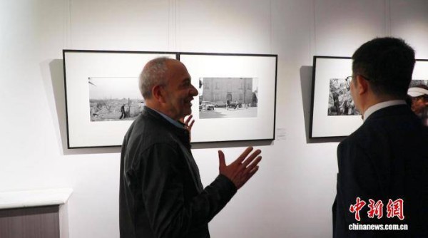 图为安德烈·卡瓦祖蒂向来宾介绍自己的摄影作品。中新网记者 陈峰 摄