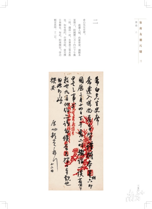 “今天这部《容庚友朋尺牍》,就是图书馆持续开展文献整理工作的结晶。”方家忠介绍,依托这批珍贵藏品,2014年,省馆正式启动“容庚先生捐赠文献汇编”的整理编纂计划,陆续编辑出版了《容庚印存》《容庚藏名人尺牍》《刘体智容庚往来书信集》等。如今这部《容庚友朋尺牍》,既是容庚一生学术交往的生动缩影,也是一座亟待发掘的学术富矿。透过这些泛黄的纸页、灵动的笔迹,读者不仅得以欣赏尺牍的书法之美,还得以走进容庚的“朋友圈”, 近距离感受那个时代学人之间笔墨风范,以及他们真挚的交流与深厚的学养。