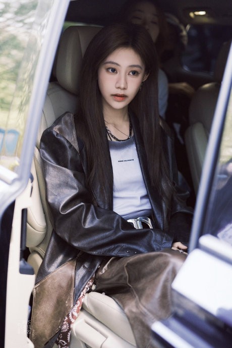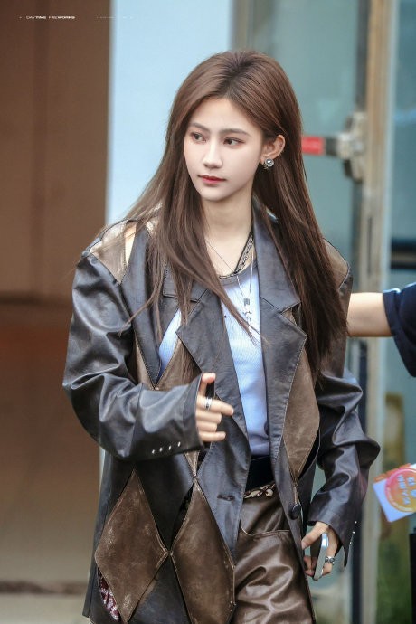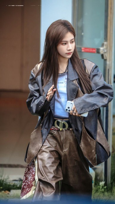 #袁一琦拼色皮衣look#袁一琦《超燃青春的合唱》上班路透好小的一张脸!拼色皮衣造型太好看了录制顺利 #袁一琦超燃青春的合唱上班#
