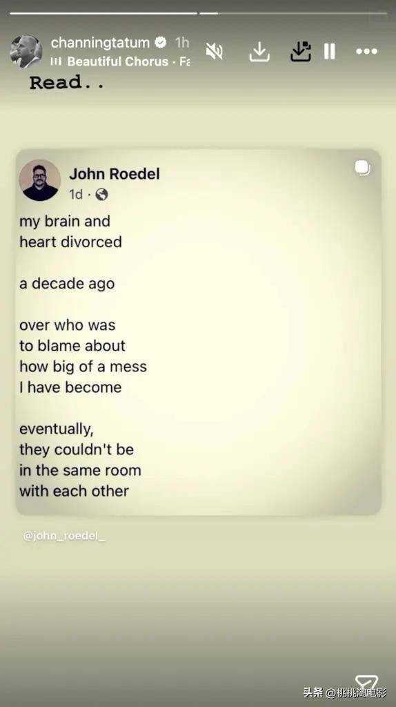如今,佐伊戴着价值超半百万美元的新钻戒,满心欢喜地准备步入下一段婚姻。而另一边的查宁,却只能通过晦涩的诗句来宣泄情绪。