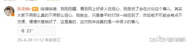 张凌赫腿伤好转坚持拍戏,报平安后继续工作
