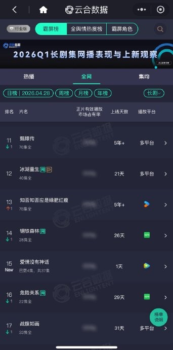 有网友呼吁唐嫣新剧重新调整滤镜?可惜收视率一天比一天低,赵丽颖《知否知否应是绿肥红瘦》+孙俪《甄嬛传》等老剧也都超了新剧唐嫣《爱情没有神话》的云合播放量。广告已经掉到1广